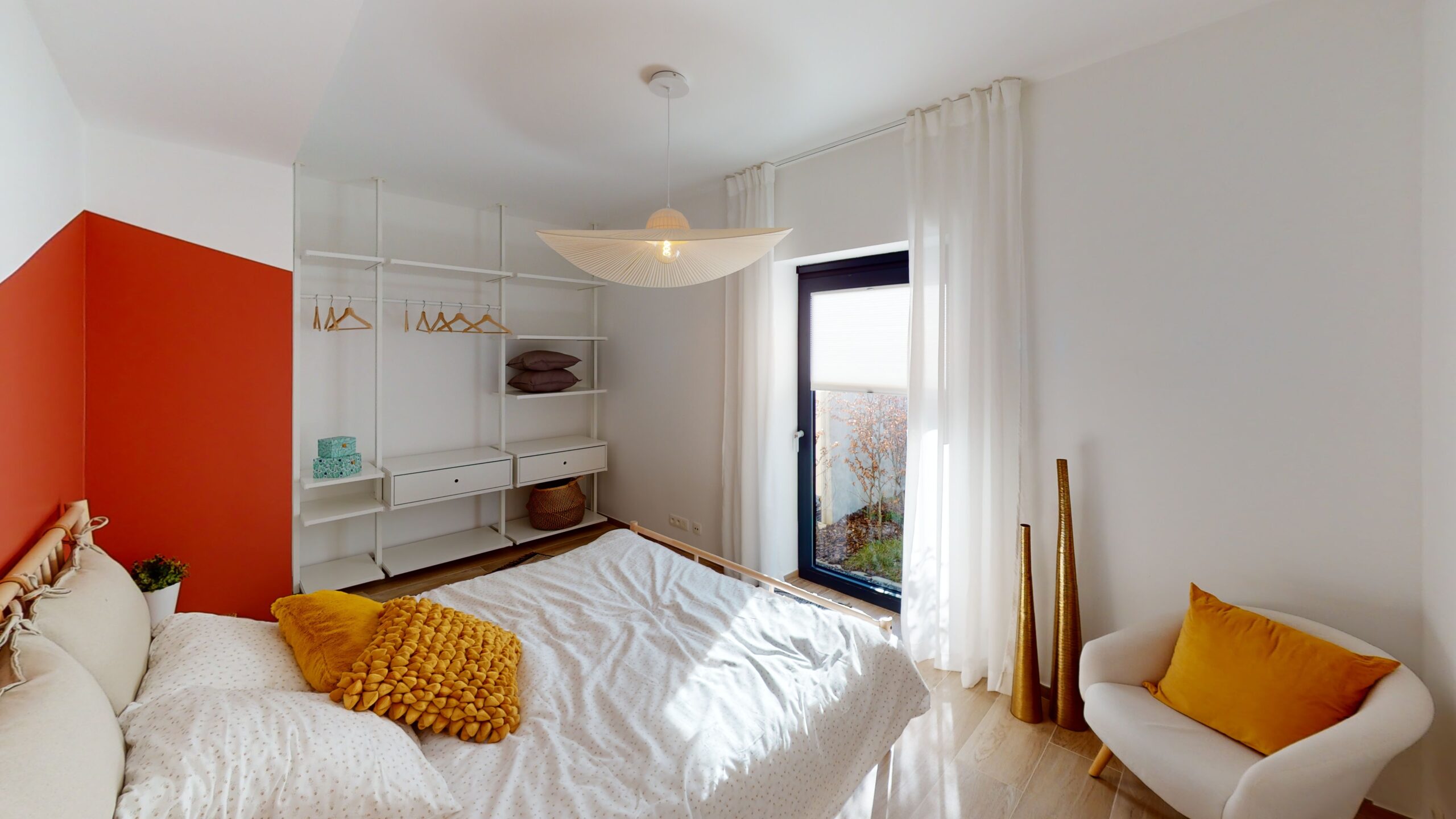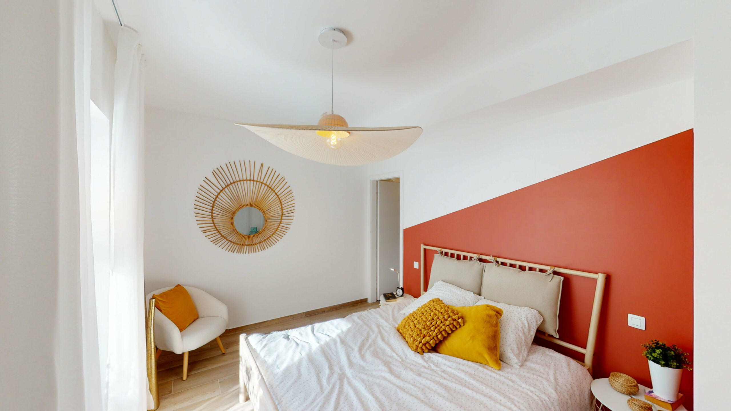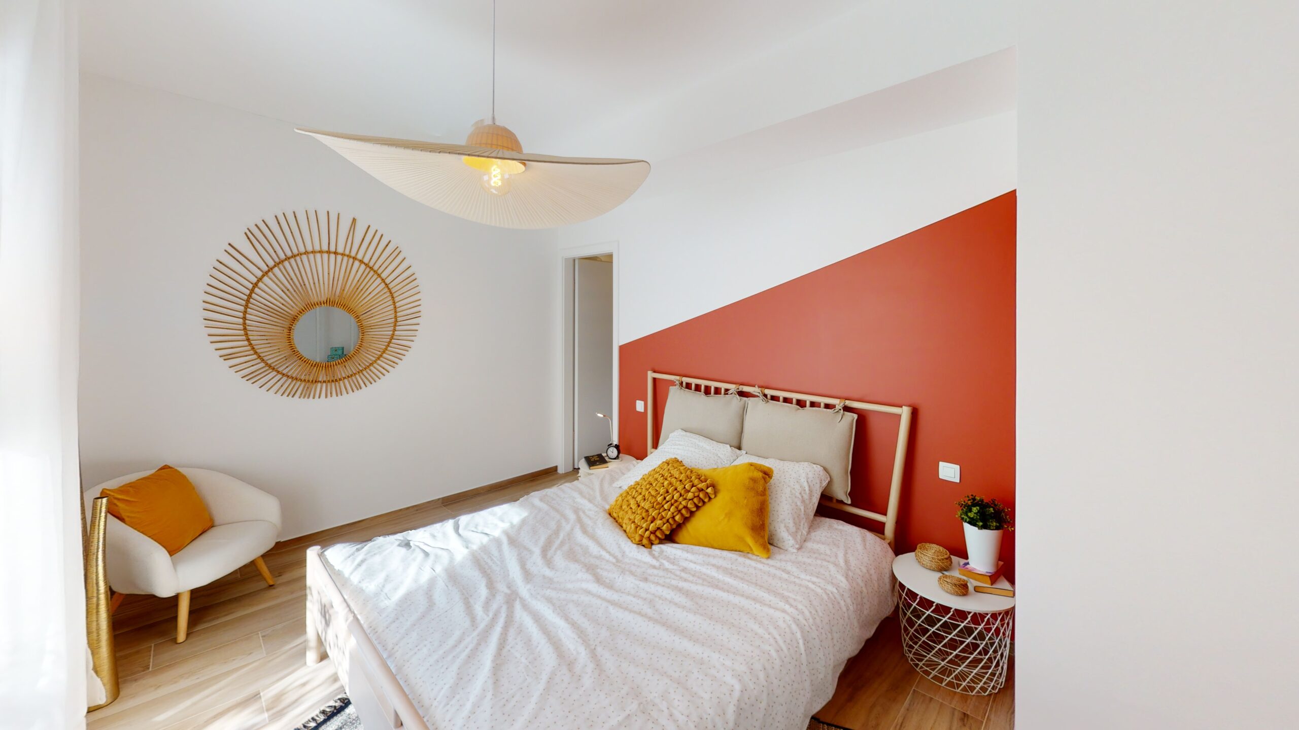 Dans le cahier des charges, il fallait repositionner quelques pièces de mobilier restant d’un précédent appartement témoin. Mais en même temps, il s’agissait de recréer une ambiance différente de ce qui avait déjà été fait.